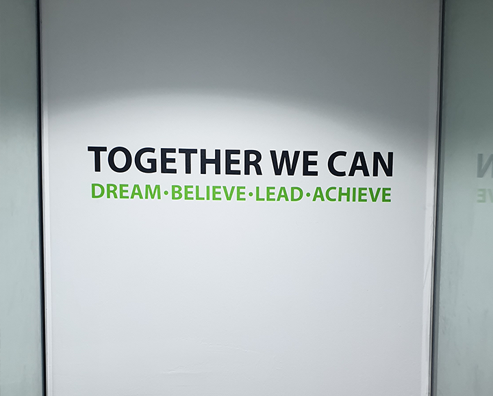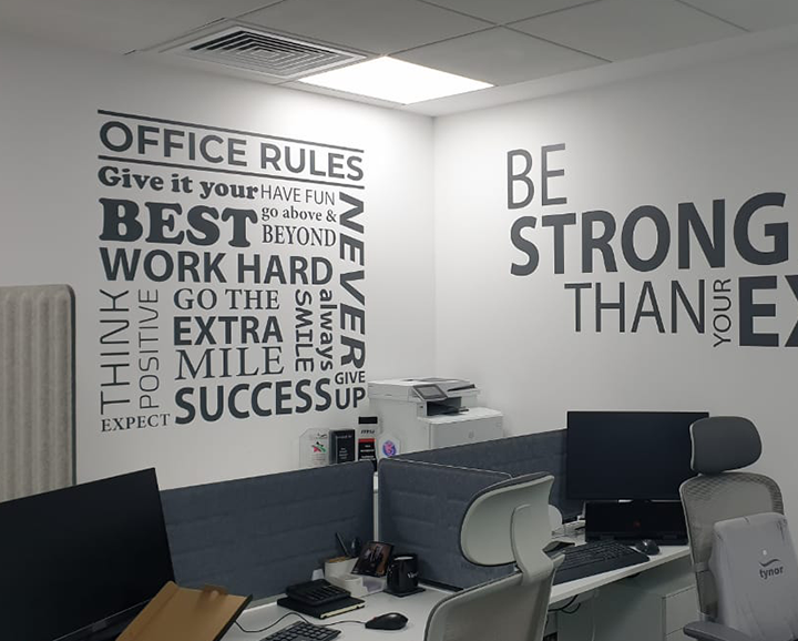 We provide complete branding solutions including wall branding, window graphics, signage, event branding, and print materials.