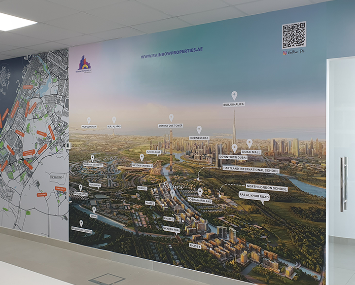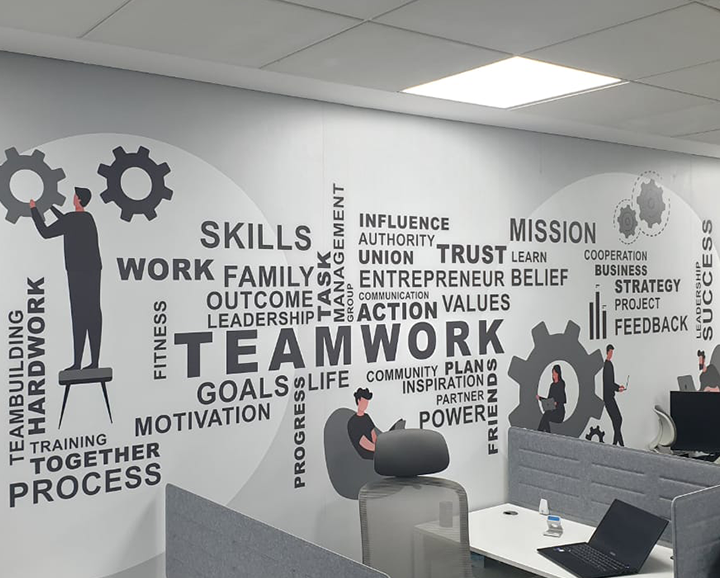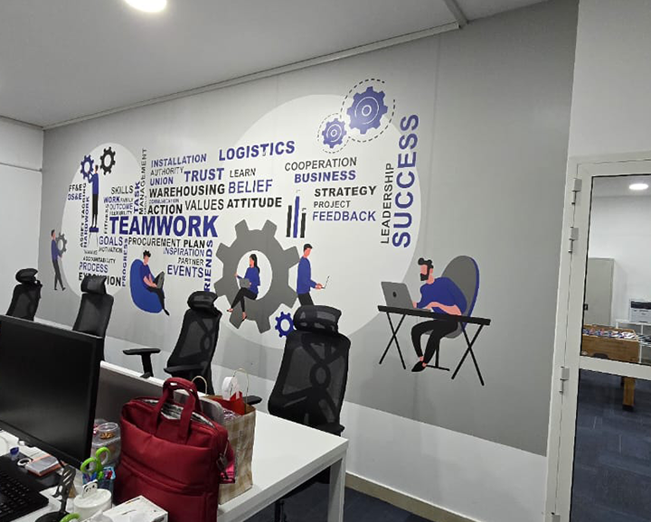 Custom wall branding in Dubai providing high-resolution indoor graphics printing and complete installation services across the UAE. We design and produce fully customized wall graphics based on client requirements, mainly for office interiors, reception areas, meeting rooms, and commercial spaces. Our solutions include creative concept design, precise printing, and professional installation to ensure a smooth and clean finish. These wall branding solutions transform plain walls into powerful branding spaces, enhancing your company with modern, attractive and visual impact that reflects your brand professionally.