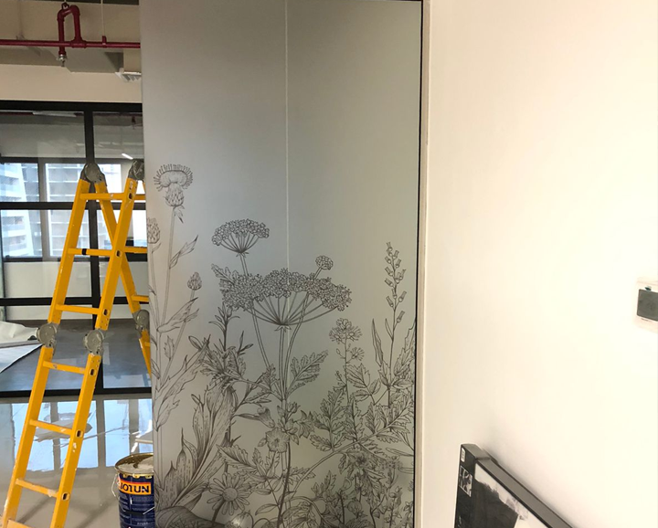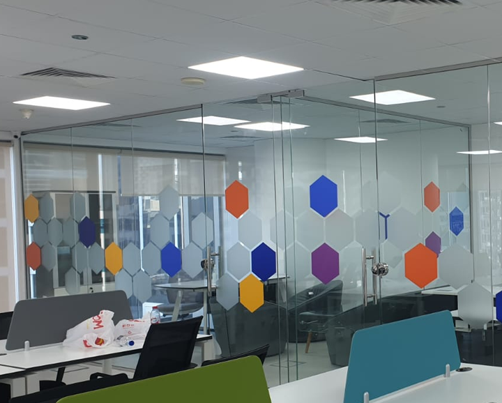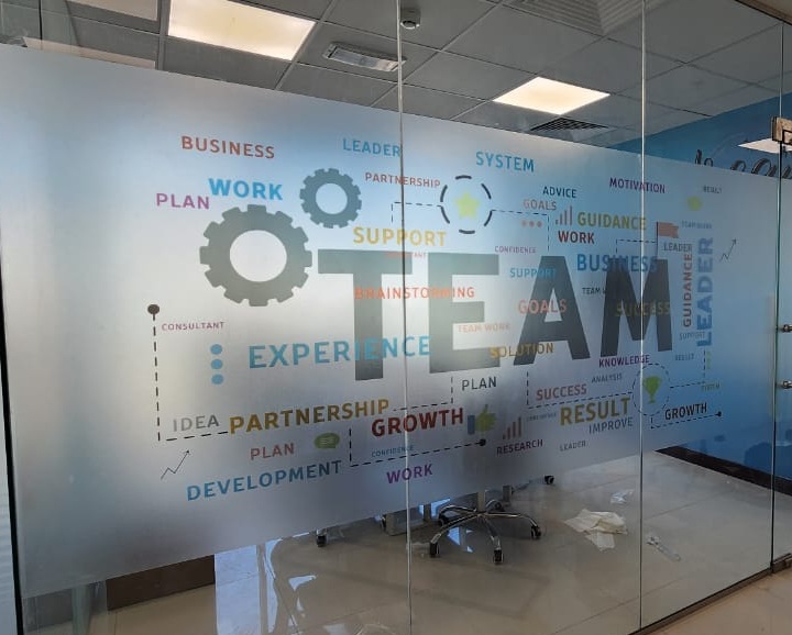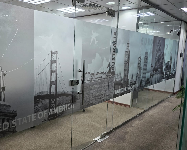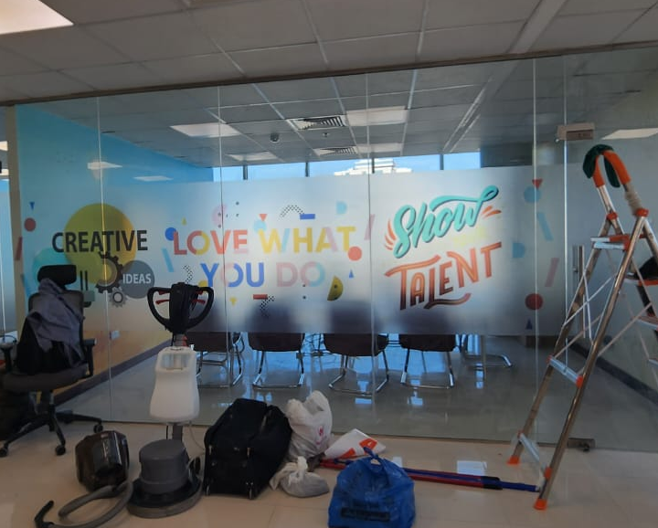 We provide complete branding solutions including wall branding, window graphics, signage, event branding, and print materials.